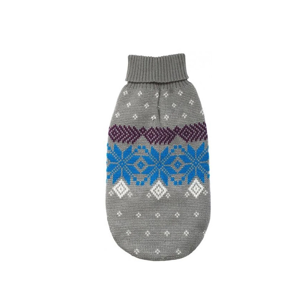 Представляем свитер для питомца от бренда УЮТ, идеальный выбор для зимних прогулок. Этот вязаный свитер серого цвета с удлиненной горловиной выполнен в зимней тематике и станет отличным дополнением гардероба вашего любимца. Элегантный белый северный орнамент и узор из синих снежинок создают праздничное настроение и подчеркивают стиль питомца.