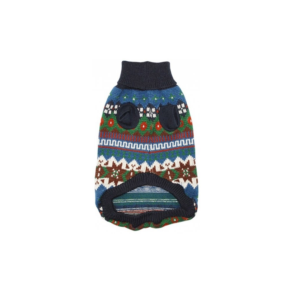 Подарите вашему питомцу тепло и стиль с вязаным свитером от бренда УЮТ. Этот свитер глубокого синего цвета не только радует глаз, но и обеспечивает тепло в холодные дни. Он украшен изысканным северным орнаментом, включающим узор из красных, белых и зеленых оттенков, что делает его идеальным для зимних праздников.