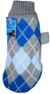 Представляем вашему вниманию вязаный свитер для питомца от бренда УЮТ — идеальный выбор для холодных дней. Этот свитер серого цвета украшен классическим орнаментом в виде синих и голубых ромбов, который добавляет изысканности и стиля.