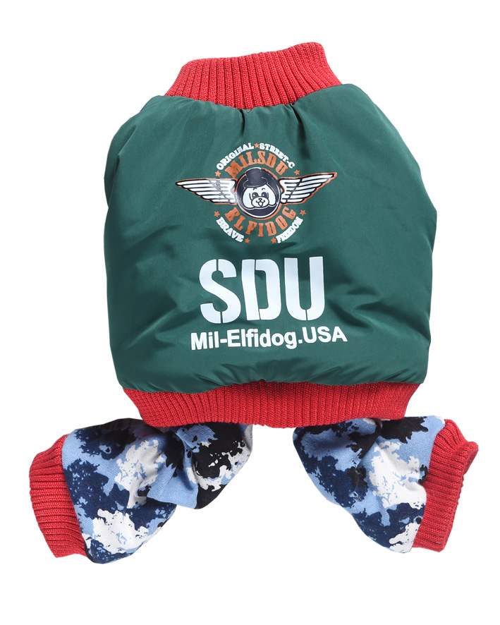 Комбинезон для питомца от бренда Уют — стильное и практичное решение для тех, кто ценит комфорт и надежную защиту своего питомца в любую погоду. Выполнен в зеленом цвете с яркими красными акцентами. Оригинальный принт в синем камуфляже придает комбинезону индивидуальность и подчеркивает армейский (милитари) стиль.