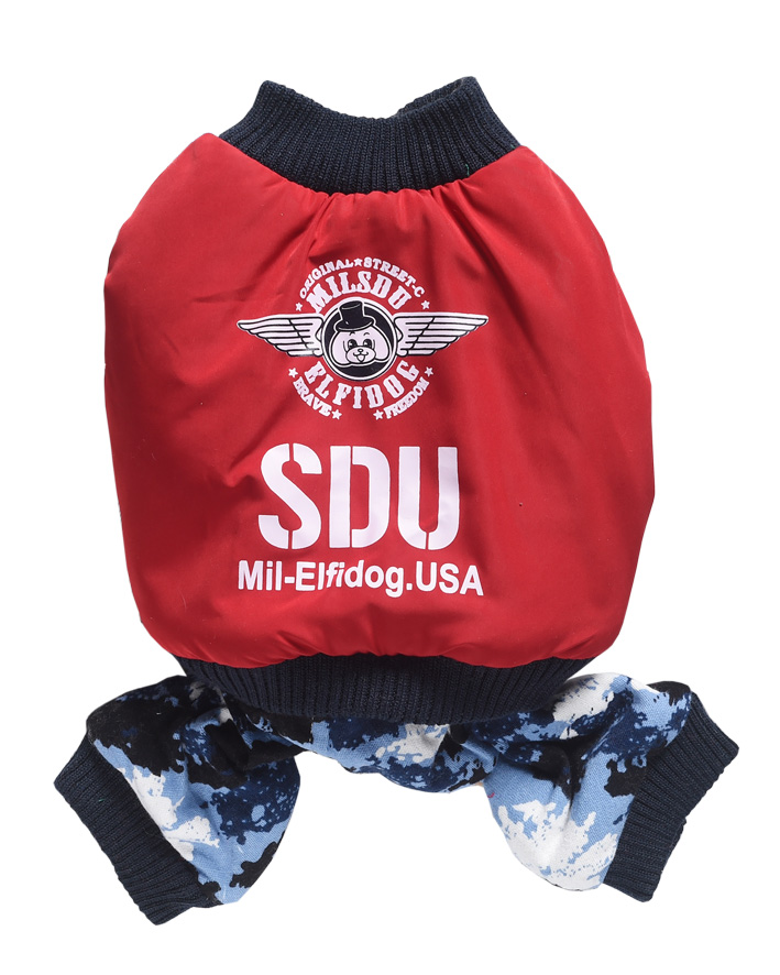 Уют Комбинезон стиль милитари, красный, принт "SDU", размер ХS, длина 21 (1*50)