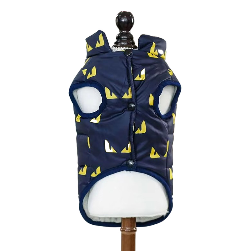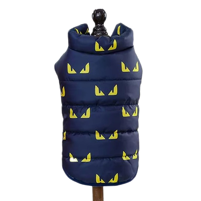 Зимний жилет для собак от бренда УЮТ — это сочетание стильного дизайна и функциональности, обеспечивающее вашему питомцу тепло и комфорт в холодное время года. Жилет выполнен в элегантном темно-синем цвете, который прекрасно гармонирует с ярким желтым принтом в виде забавных глазок, добавляя образу вашего четвероногого друга игривость и привлекательность.