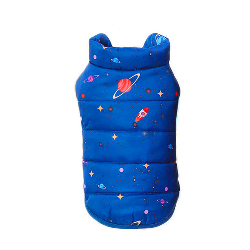 Представляем стильный и практичный зимний жилет для питомца от бренда Уют. Это теплый и удобный аксессуар, который обеспечит комфорт вашему питомцу даже в самые холодные дни. Жилет выполнен в ярком синем цвете с принтом на космическую тематику, что придаст вашему питомцу уникальный и современный вид. Удлиненный воротник защитит от ветра и холода, а застежка на кнопках позволяет легко и быстро надевать жилет, обеспечивая удобство как для вас, так и для вашего питомца.
