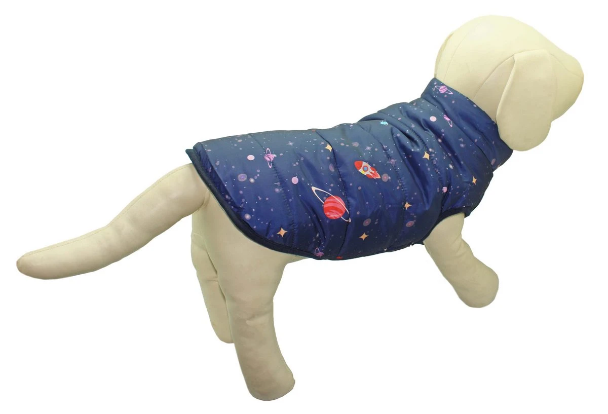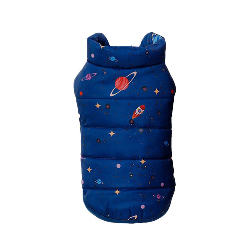 Зимний жилет для питомца от бренда Уют — это стильное и практичное решение для холодного сезона. Выполненный в темно-синем цвете с оригинальным принтом на космическую тематику - планеты, звезды и ракеты, он не только защитит вашего питомца от холода, но и подчеркнет его индивидуальность. Удлиненный воротник обеспечивает дополнительную защиту от ветра и сохраняет тепло, делая каждую прогулку комфортной.