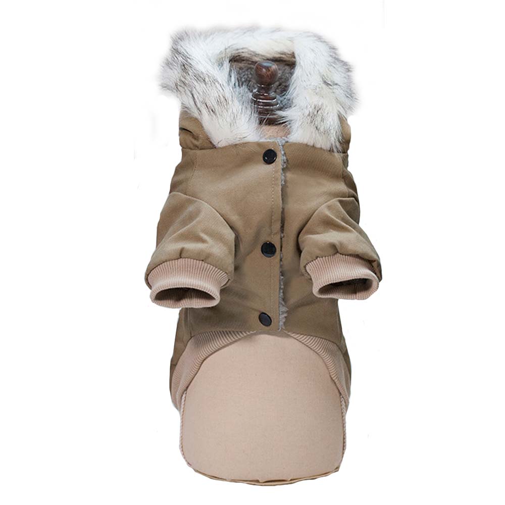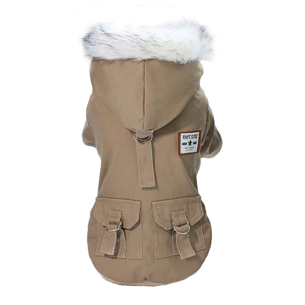 Зимнее пальто для питомца от бренда Уют — это стильная и функциональная одежда, которая обеспечит комфорт и защиту вашего четвероногого друга в холодную погоду. Выполненное в трендовом стиле милитари, в цвете песочный хаки, оно подчеркивает индивидуальность и современный образ питомца. Капюшон с меховой отделкой добавляет изысканности, а практичные карманы придают дополнительную функциональность.