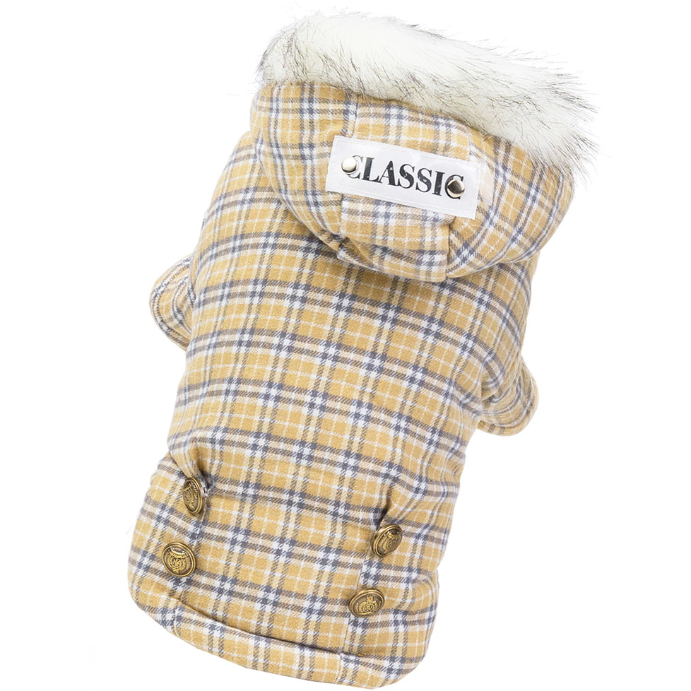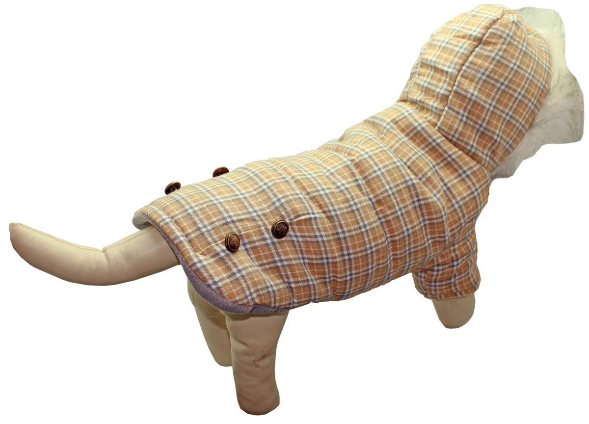 УЮТ Зимнее пальто для собак в клетку с капюшоном, на кнопках, 20см, цвета хаки, S, (1*60)
