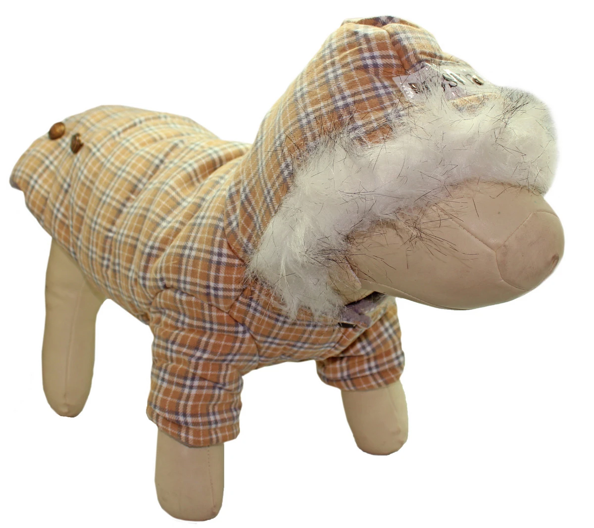 Зимнее пальто для собак от бренда УЮТ — элегантный выбор для стильных питомцев! Выполненное в бежевом цвете с классическим клетчатым принтом, оно придаст вашему любимцу изысканный. Утепленное и комфортное, это пальто создано для того, чтобы защищать вашего питомца от холодов и ветра, сохраняя тепло на протяжении всей прогулки.