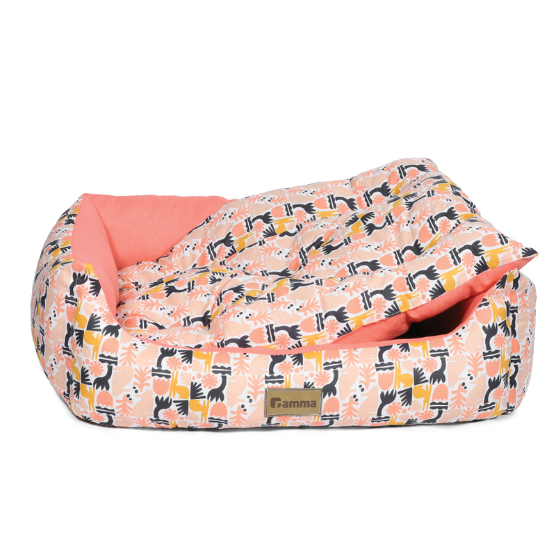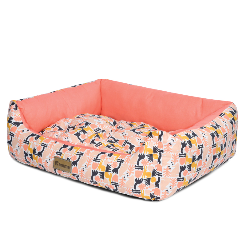 Имея прямоугольную форму и бортики, она обеспечивает максимальный уют и поддержку для отдыха. Лежанка выполнена из высококачественного материала перкаль, который отличается прочностью и мягкостью. Ее розовый цвет с оттенком сэлмон и авторский оригинальный узор придают изделию уникальный и современный вид. Удобная съемная подушка облегчает уход и обеспечивает дополнительный комфорт.