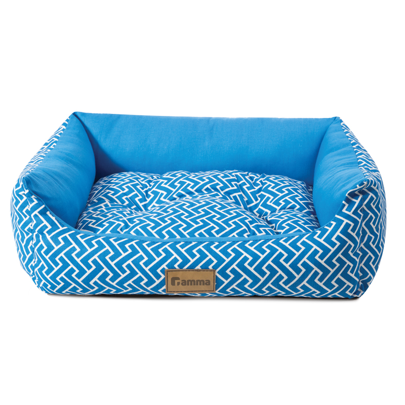 Эта лежанка в прямоугольной форме выполнена в насыщенном голубом цвете и украшена белым геометрическим узором, придающим ей современный и привлекательный вид. Бортики по краям обеспечивают дополнительную поддержку, создавая уютное и защищенное пространство для отдыха. Удобная съемная подушка делает уход за лежанкой простым и легким.