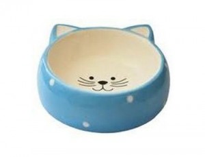 N1Миска керамическая в форме мордочки кошки, голубая, горох 12,5*12,5*3,8см, 120мл