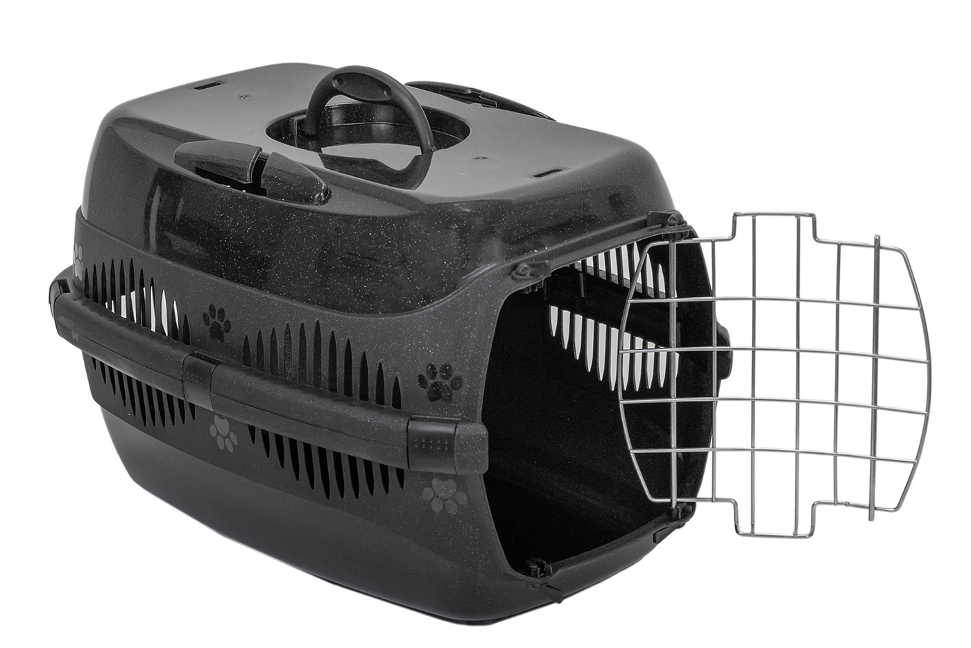Переноска оборудована вентиляционными отверстиями, обеспечивающими отличную циркуляцию воздуха и комфорт для вашего питомца. Металлическая дверца-решетка надежно фиксируется и плотно запирается, предотвращая случайное открытие. Крепкая и удобная ручка облегчает переноску, а надежные крепления гарантируют безопасность и устойчивость.
