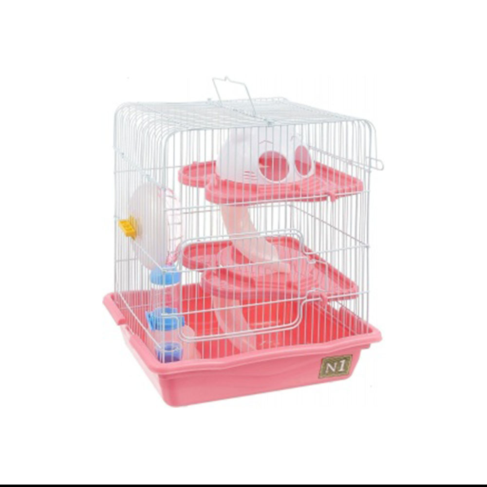 —№1 Клетка для грызуна, 35,5*26,6*40,5, 2 этажная, фигурная крыша, розовая, 1*10