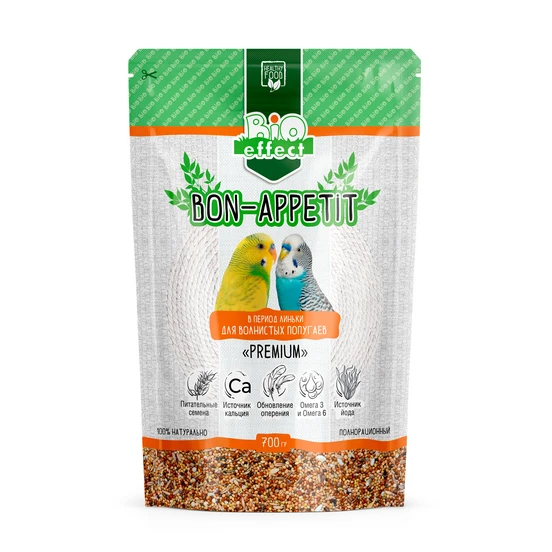 Био Эффект BON APPETIT Premium 700г. д/волнистых попугаев в период линьки полнорационный*12
