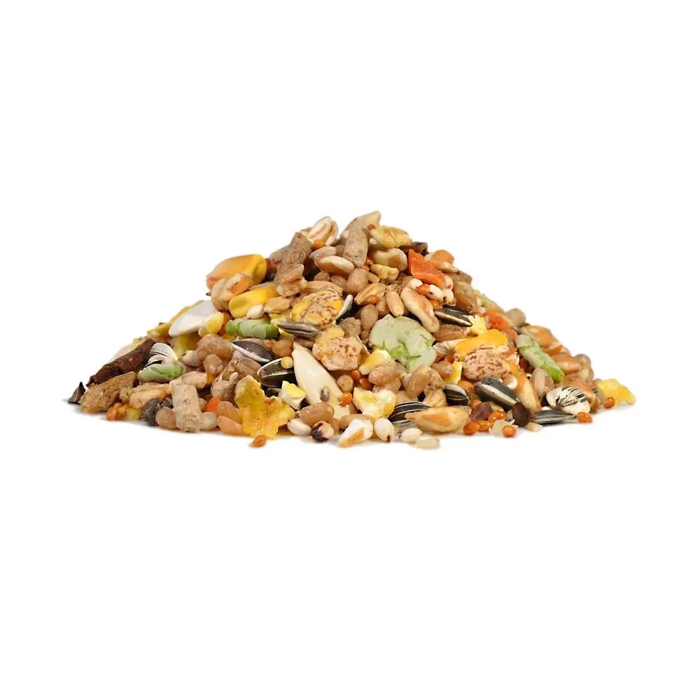 Пшеница, просо красное, сорго белое, ячмень, гранулы мультизерновые, овсянка, семена подсолнечника, ячмень плющеный, хлопья кукурузные, гречиха, плоды рожкового дерева (кэроб), горох плющеный, пшеница воздушная, кукуруза воздушная, ячмень воздушный, арахис, кукуруза, люпин сладкий плющеный, морковь сушёная, семечки тыквенные, фруктоолигосахариды, экстракт юкки