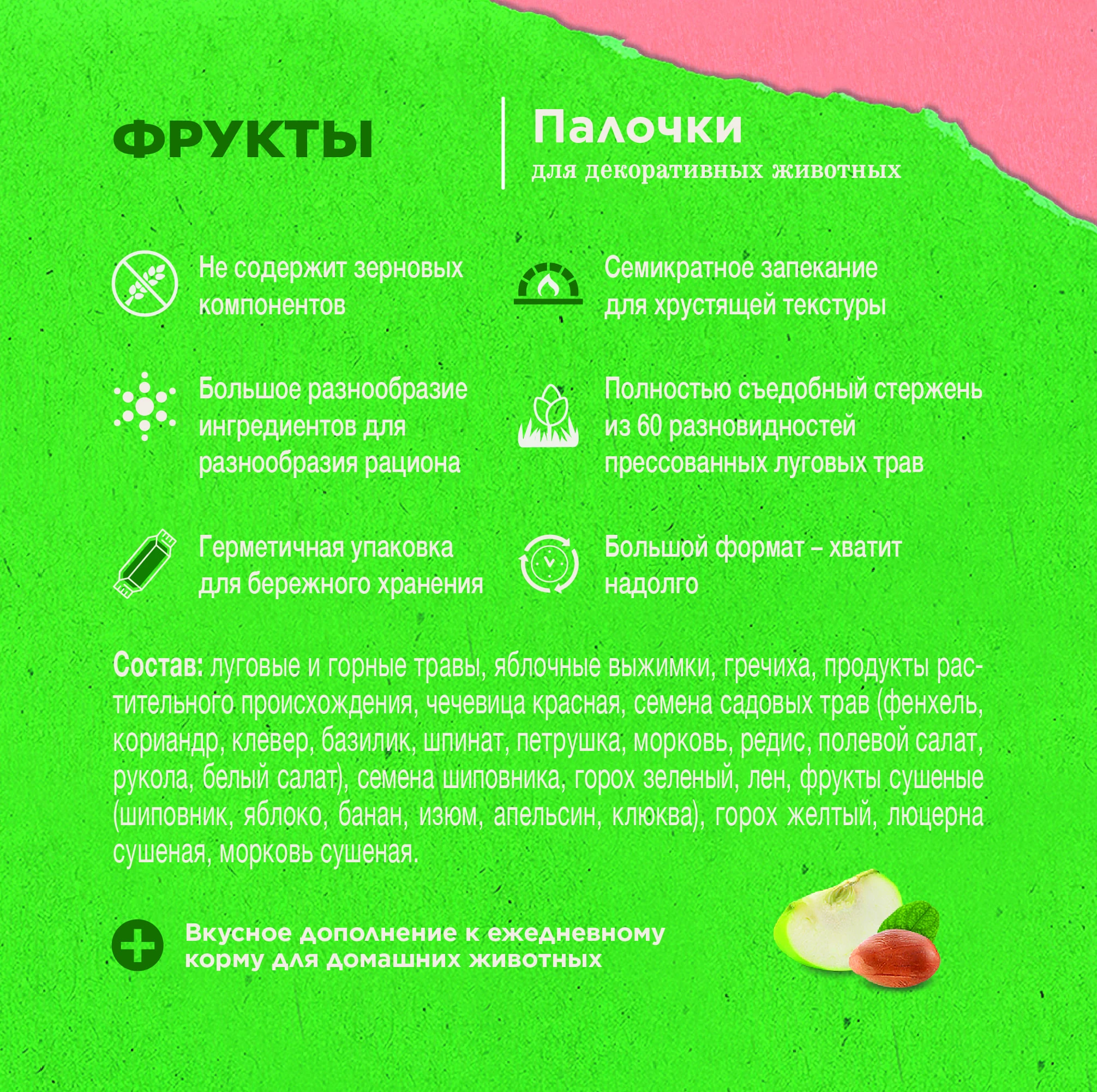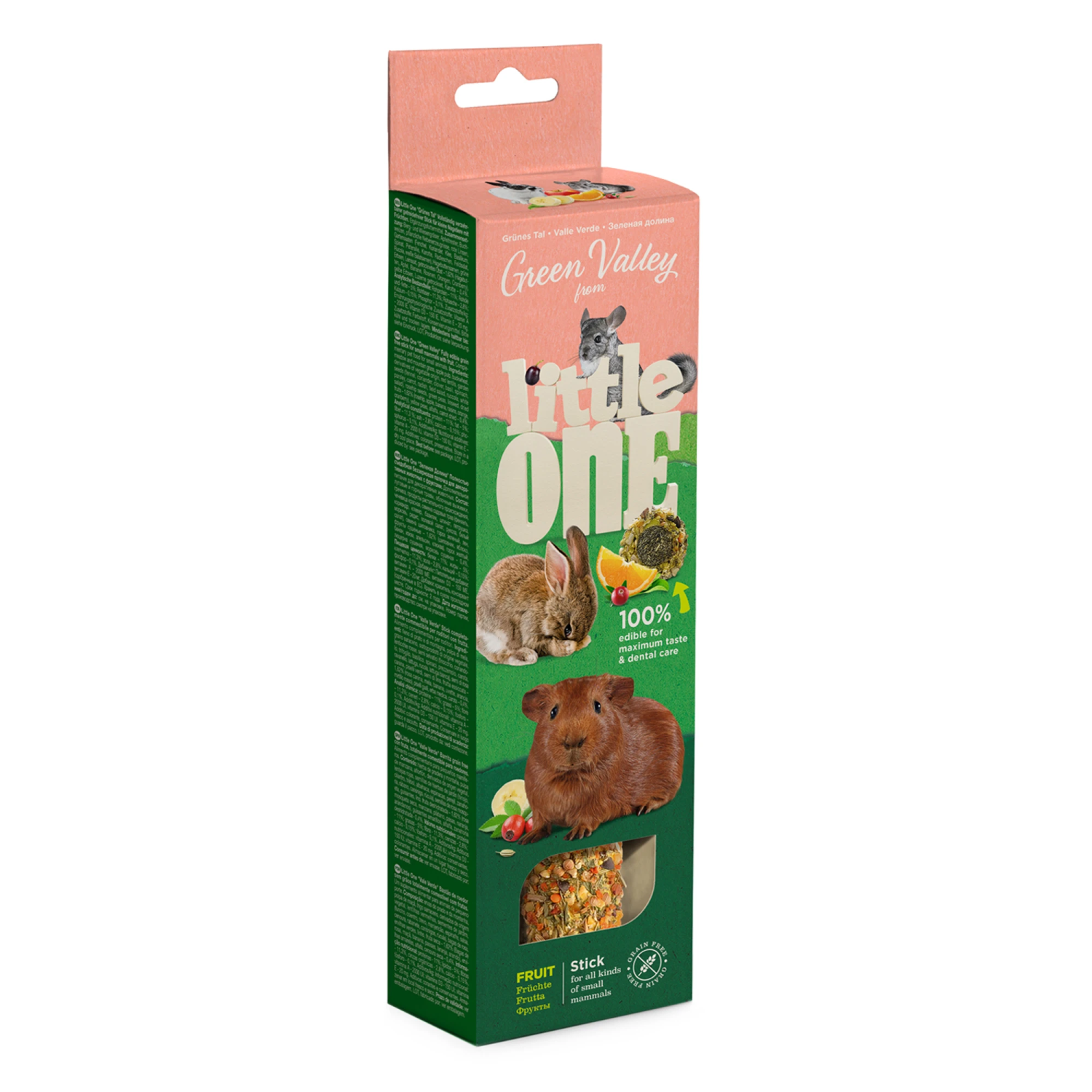 Little One «Зеленая долина» Полностью съедобная беззерновая палочка для декоративных животных с фруктами, 1х180 г