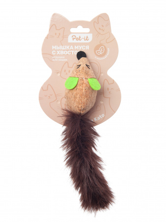 —Pet-it игрушка для кошек Мышка Муся, 5x26см с пушистым хвостом, с мятой