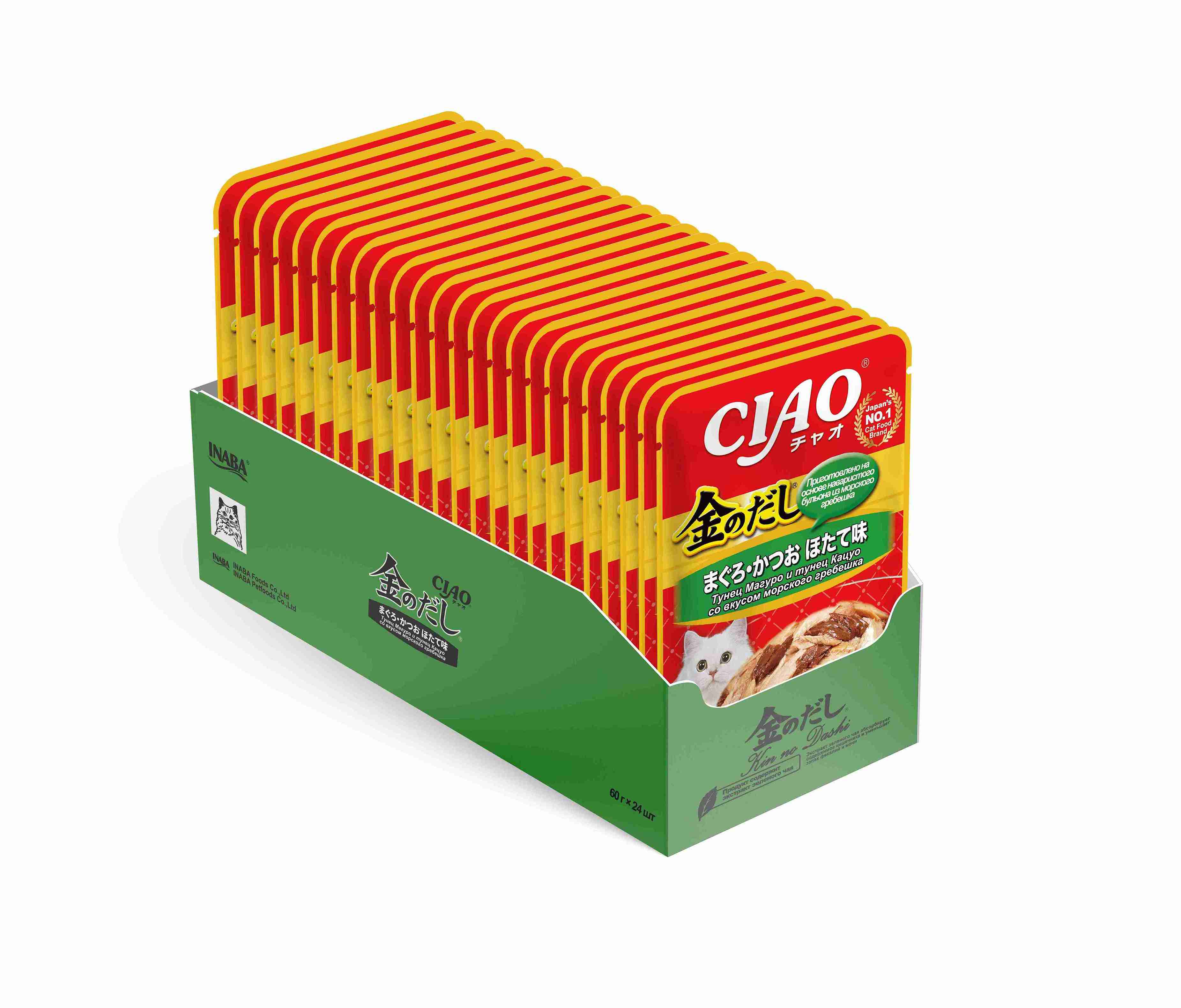 INABA ЧАО КИННОДАСИ пауч д/кошек в желе тунец Магуро и Кацуо со вкусом морского гребешка 60гр. RU201