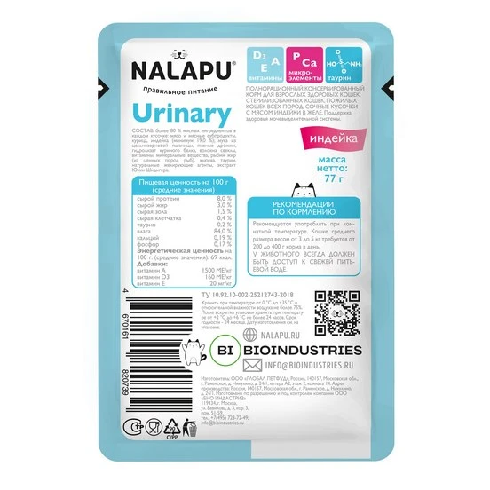 —NALAPU Urinary для стерилиз.кошек и кастр.котов Индейка в желе пауч 77г