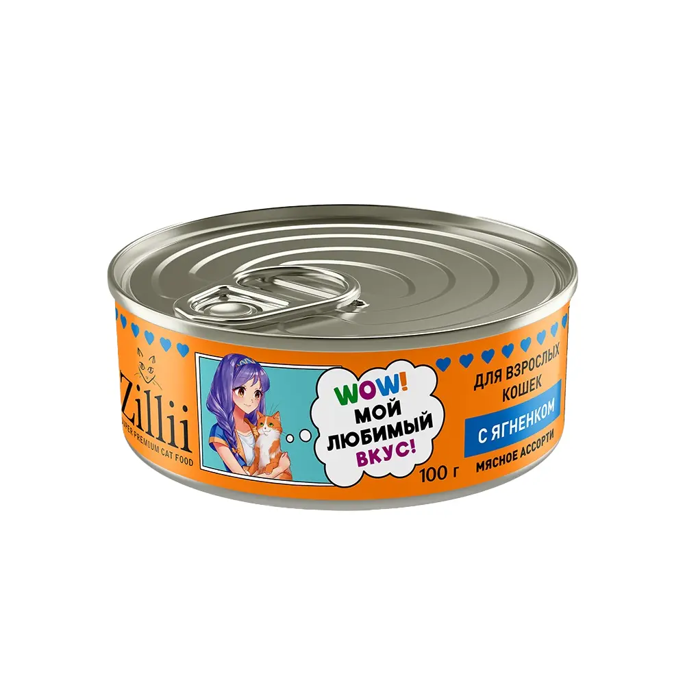 ZILLII для взрослых кошек с Ягненком влажн. банка 100г