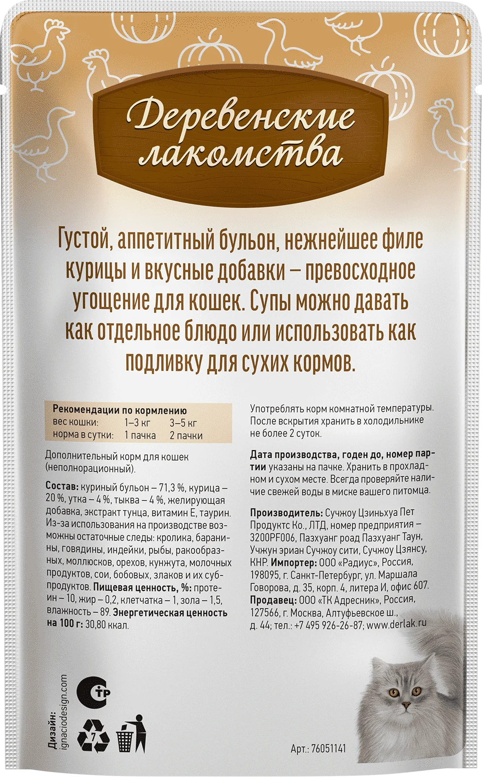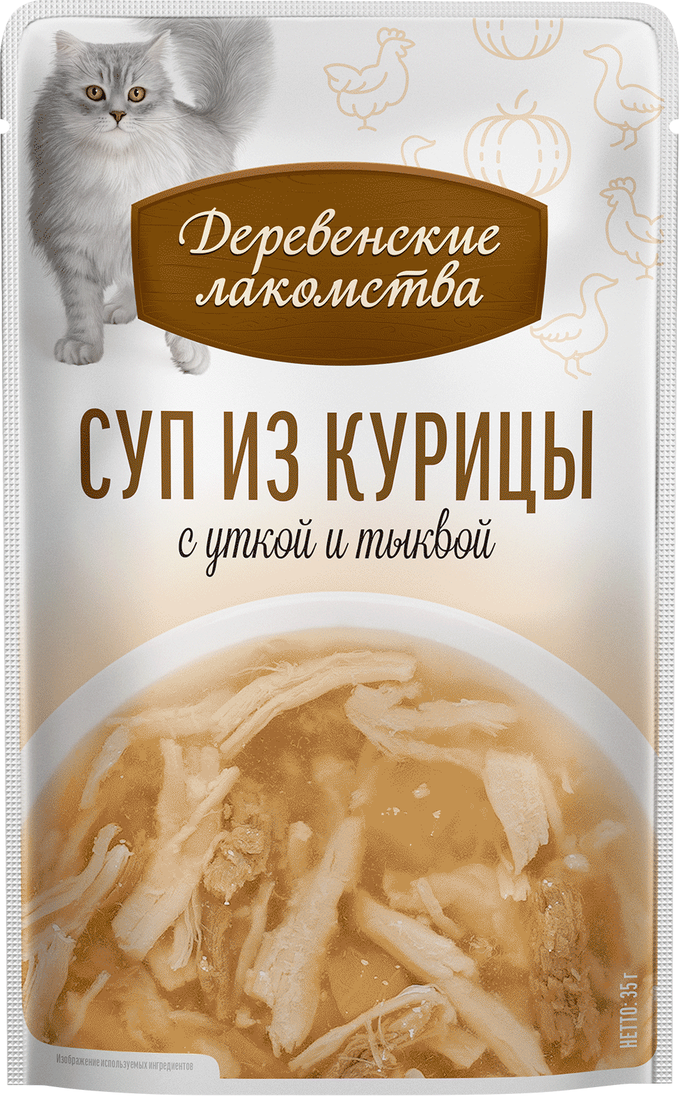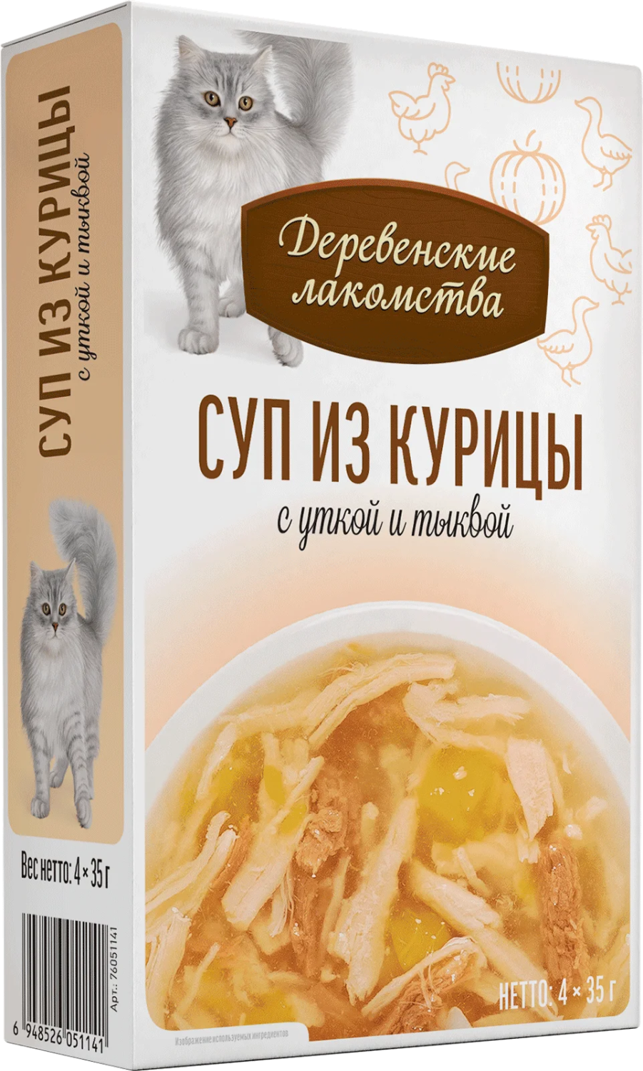 —Деревенские лакомства суп из курицы с уткой и тыквой д/кошек 4 шт по 35г*20