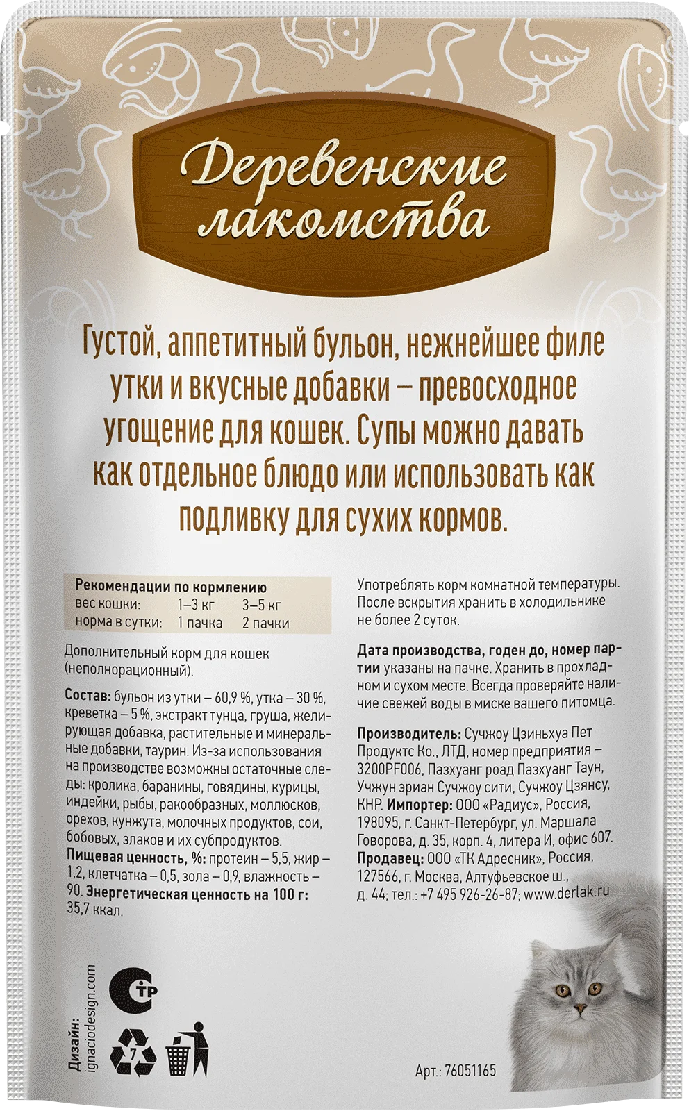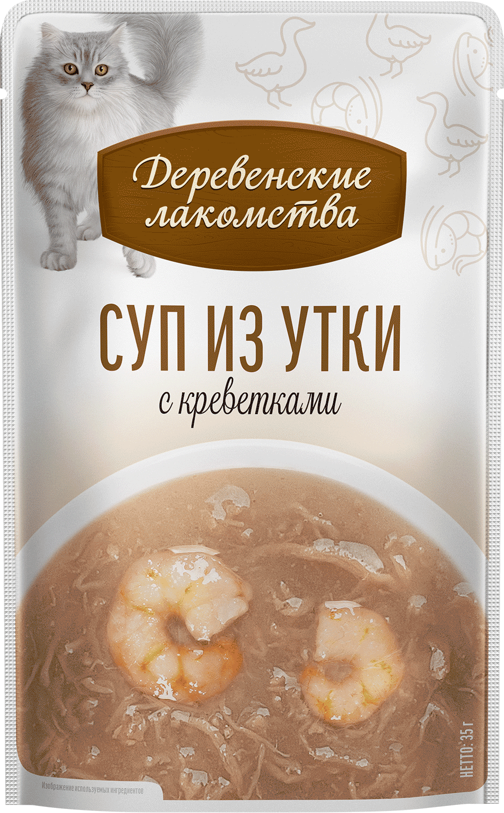 —Деревенские лакомства суп из утки с креветкой д/кошек 4 шт по 35г*20