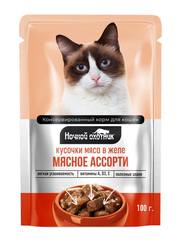 Ночной Охотник конс. д/к Мясное ассорти в желе дой-пак 100гр.