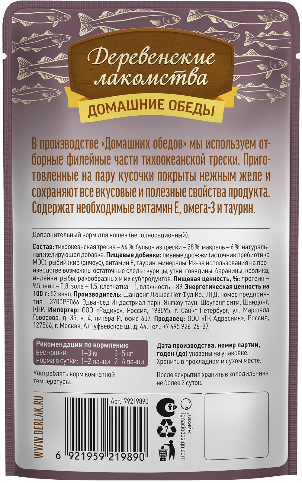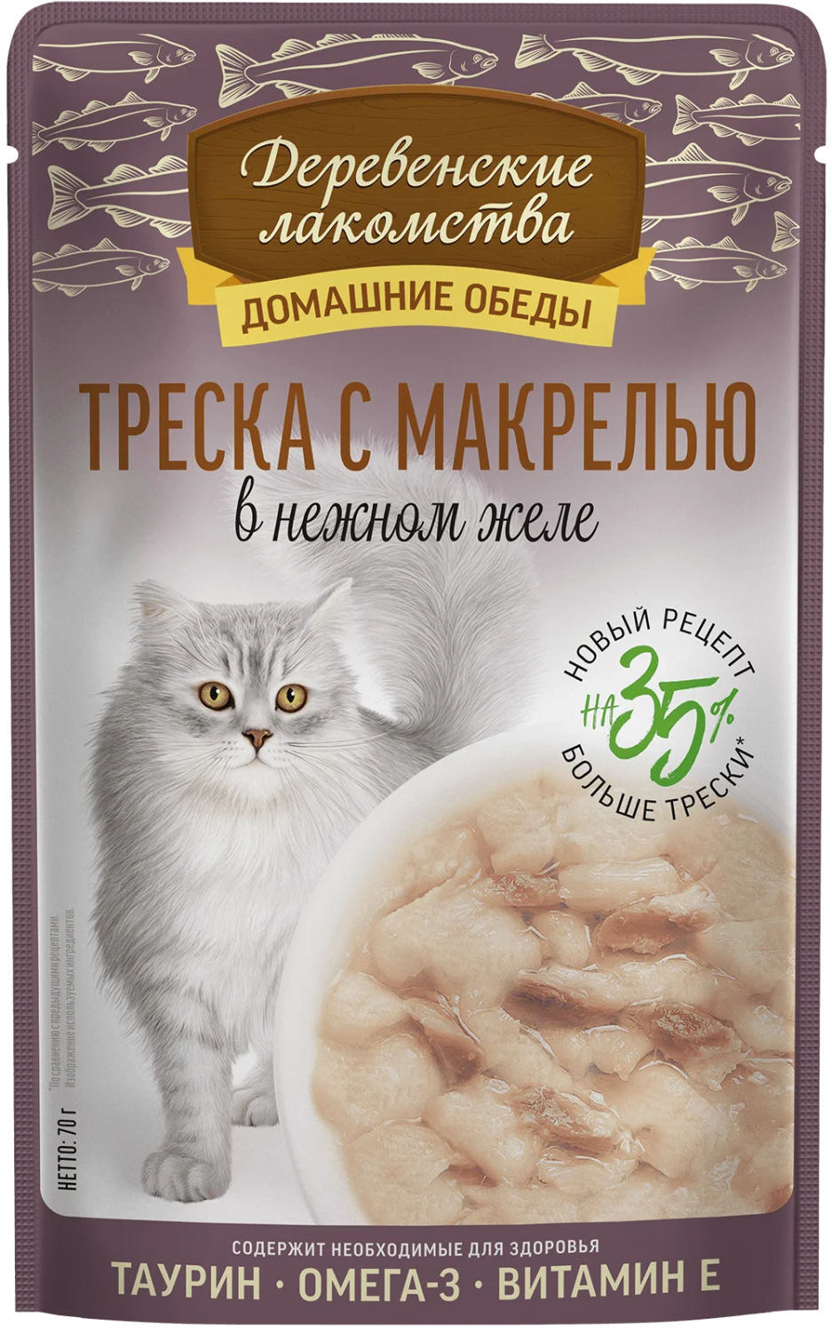 —Деревенские лакомства пауч. д/кошек Треска с макрелью в нежном желе, 70г