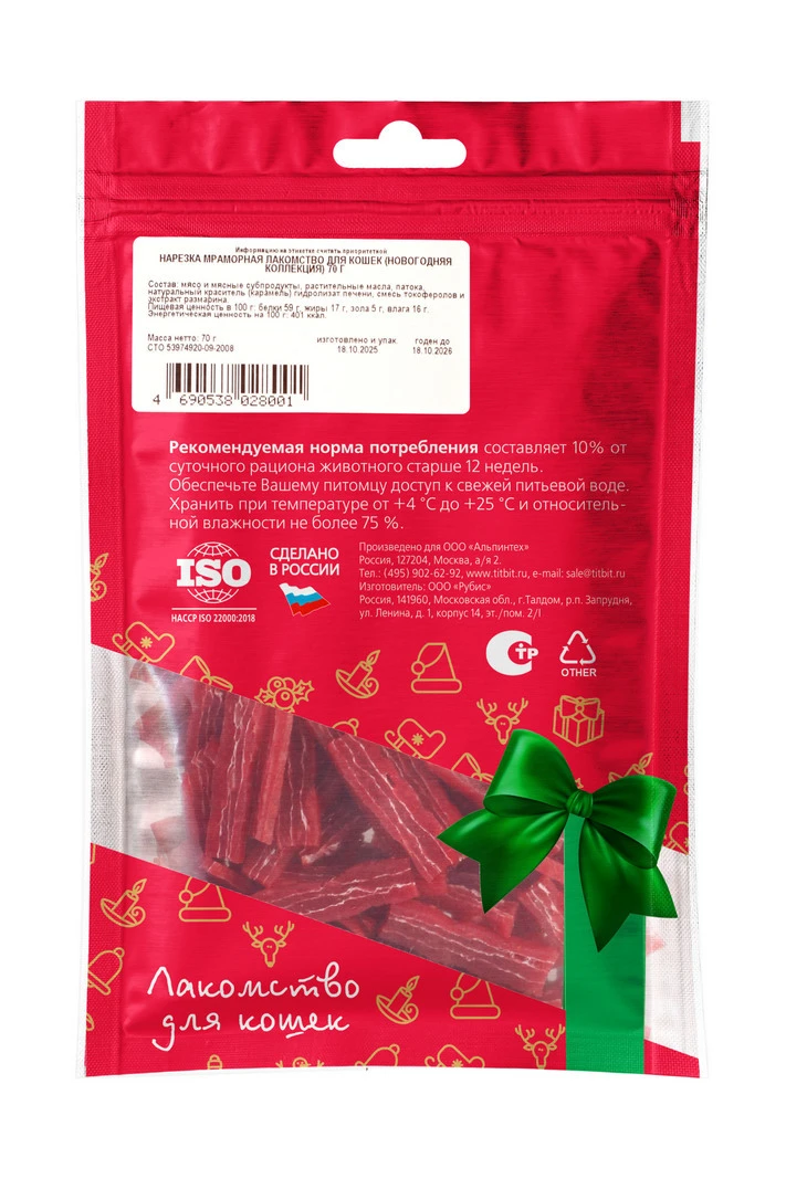 —Нарезка мраморная лакомство для кошек Новогодняя коллекция 70 гр