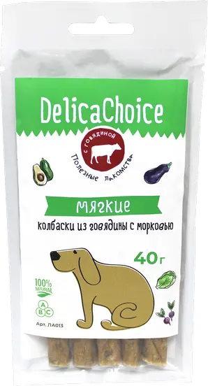 ДеликаЧойс Мягкие колбаски из говядины с морковью 40гр