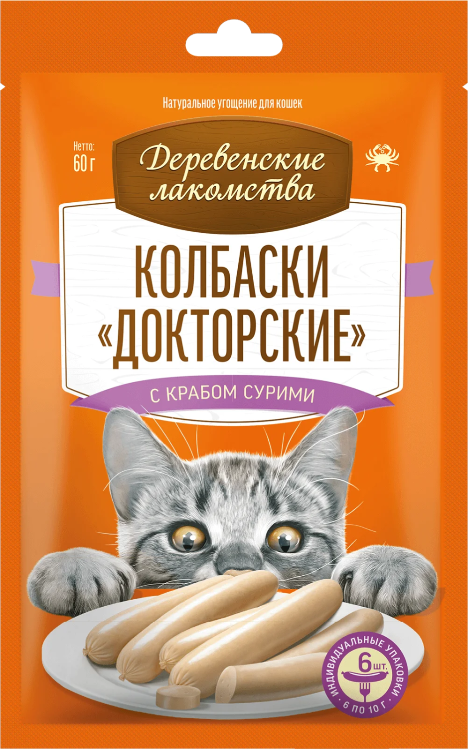 —Колбаски "Докторские" с крабом сурими д/кошек "Деревенские лакомства",60 гр