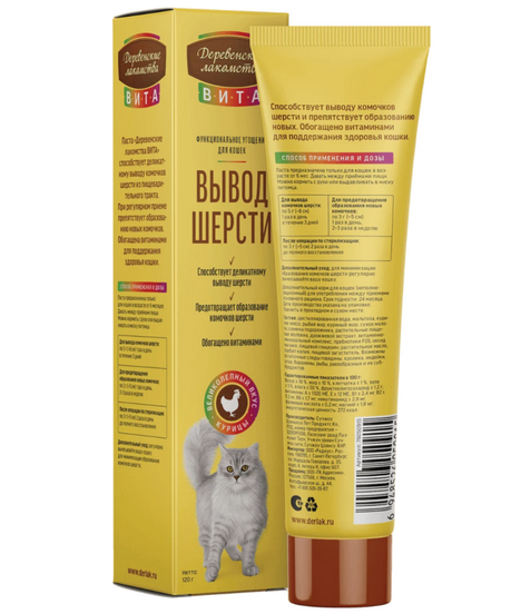 —Паста вывод шерсти для кош со вкус курицы, 60 гр "Деревенские лакомства" Вита