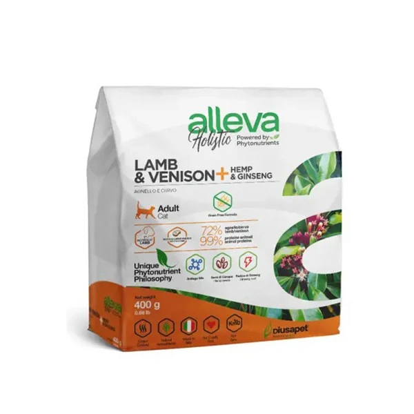 —Аллева корм для взрослых кошек Холистик 0,4кг с ягненком и олениной, коноплей и женьшенем