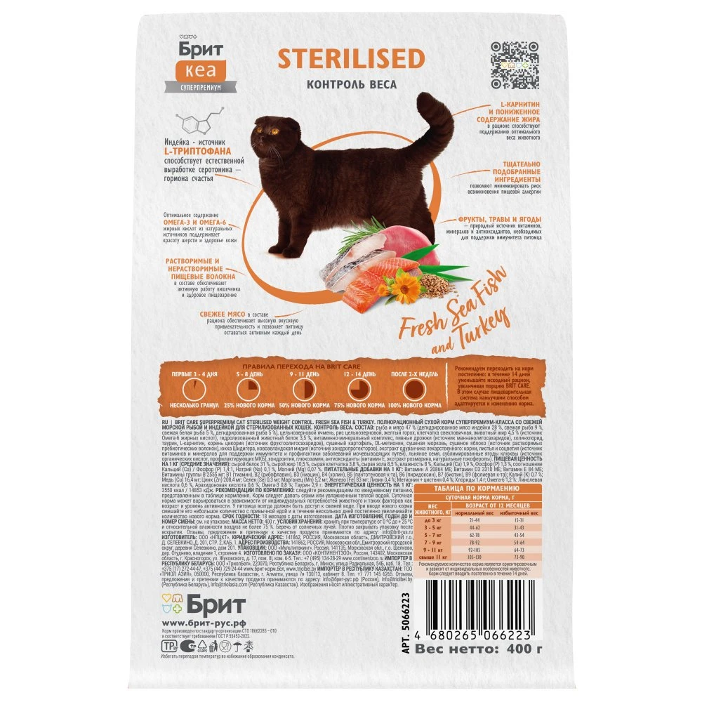 Брит КЕА сухой корм д/стер кош 0.4кг с белой рыбой и индейкой WEIGHT CONTROL