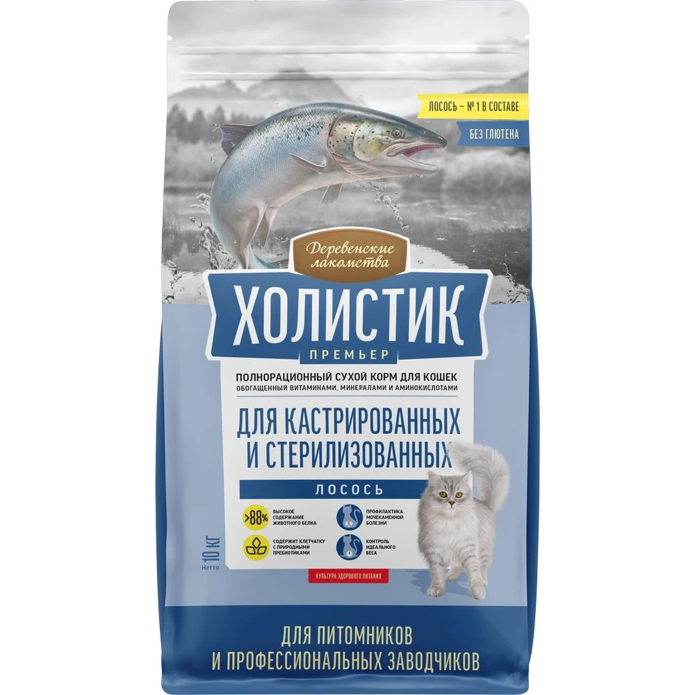 Деревенские лакомства Холистик д/кош.лосось.кастр.стерил, 10кг