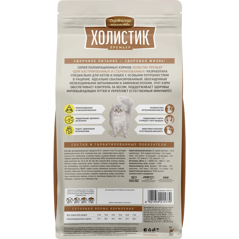 —Деревенские лакомства Холистик д/кош.говяд.кастр.стерил,10кг