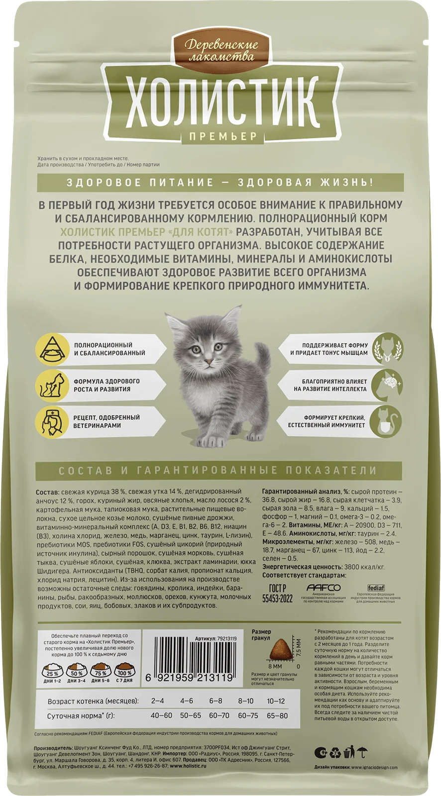 —Деревенские лакомства Холистик д/котят.курица,10кг