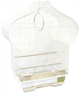 Полностью укомплектована необходимыми аксессуарами - кормушки, жердочки и качелька. Сложная фигурная крыша подчеркивает индивидуальность дизайна этой клетки.