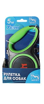 Уют Рулетка-поводок/ремень д/собак 5м зеленая, до 45кг, 1*48шт