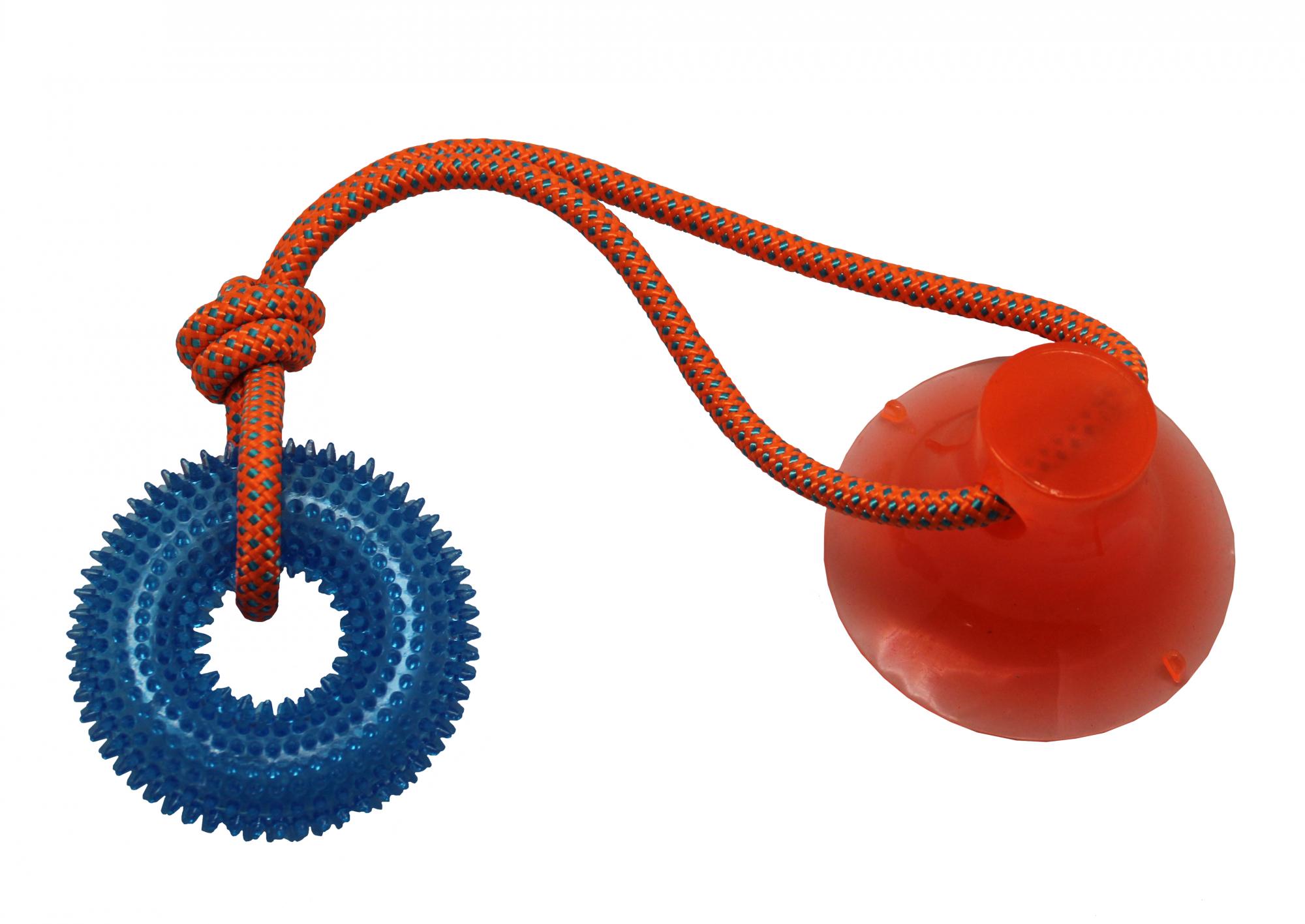 —№1 Игрушка интерактивная для собак Тяни-Кусай, одна присоска, 45см, синее шипован. кольцо,1*50шт