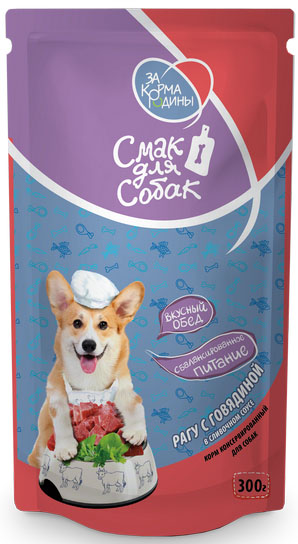 —ЗА КОРМА РОДИНЫ консер д/соб "Смак для собак. РАГУ с говядиной в сливочном соусе" 0,3 кг