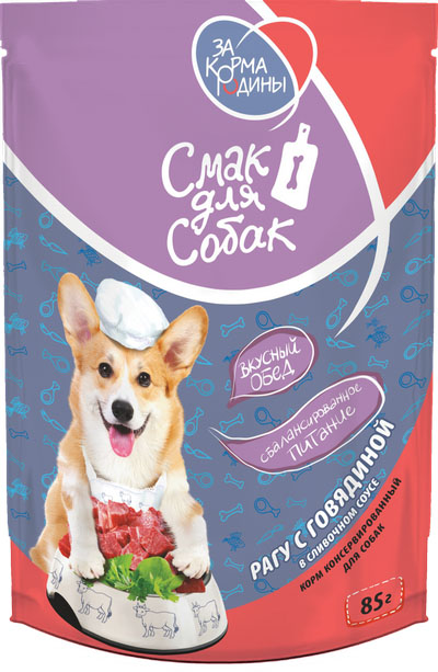 ЗА КОРМА РОДИНЫ консер д/соб "Смак для собак. РАГУ с говядиной в сливочном соусе" 0,085 кг