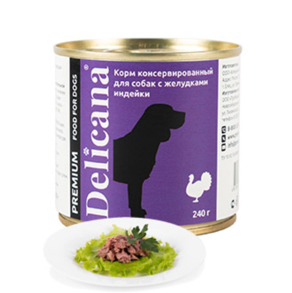 DELICANA КОНСЕРВИРОВАННЫЙ КОРМ ДЛЯ СОБАК С ЖЕЛУДОЧКАМИ ИНДЕЙКИ, 240г