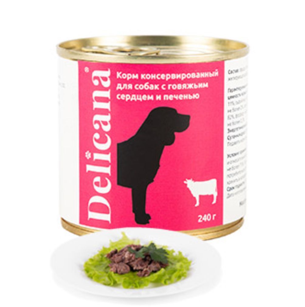DELICANA КОНСЕРВИРОВАННЫЙ КОРМ ДЛЯ СОБАК С ГОВЯЖЬИМ СЕРДЦЕМ И ПЕЧЕНЬЮ, 240г