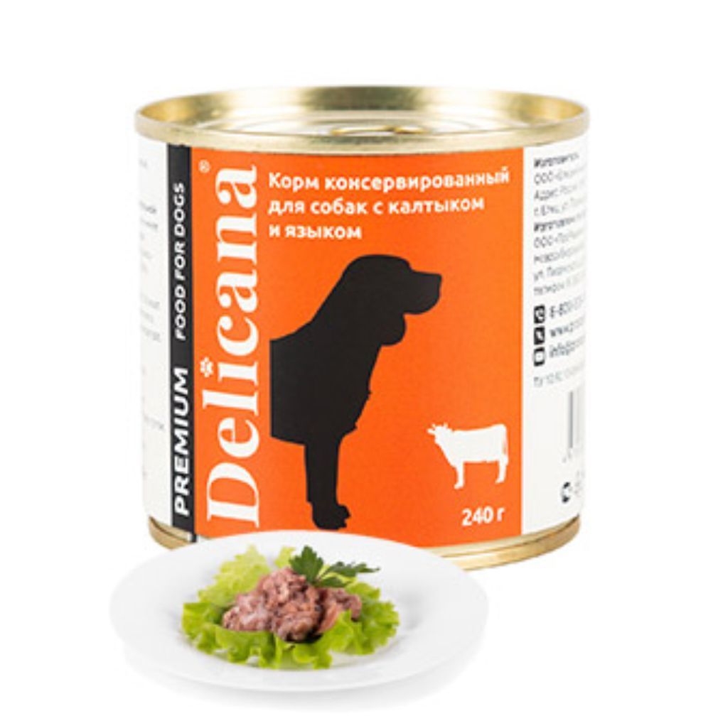 DELICANA КОНСЕРВИРОВАННЫЙ КОРМ ДЛЯ СОБАК С КАЛТЫКОМ И ЯЗЫКОМ, 240г