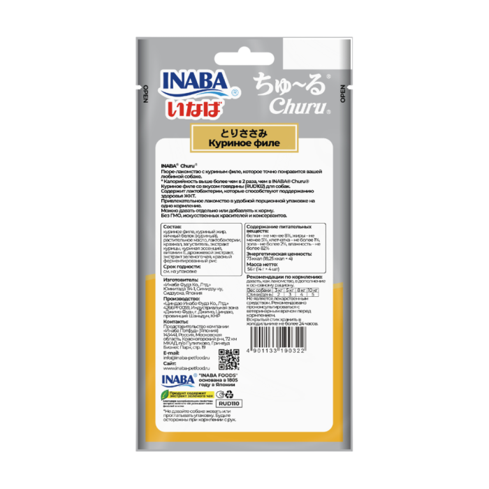 —INABA ЧУРУ пюре д/собак куриное филе Энергия (14гр.*4) RUD110