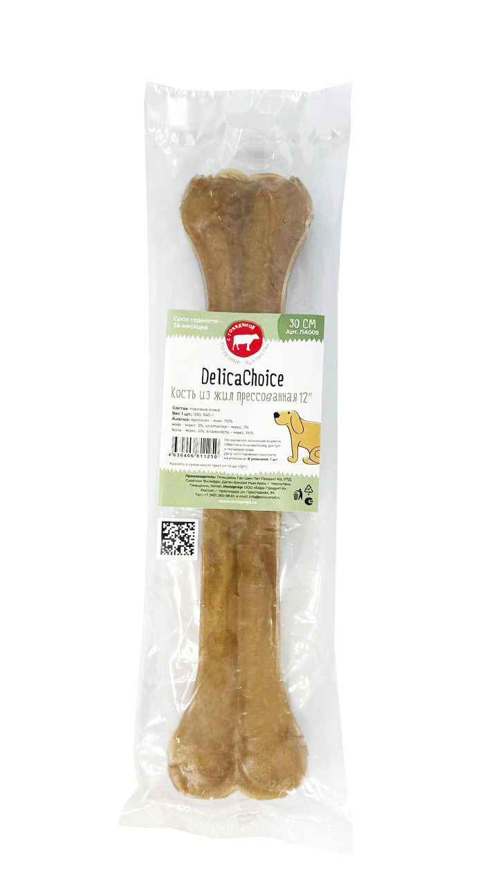 —ДеликаЧойс 12" Кость из жил 30 см (в 1шт.1кость) 330-340г, (40шт. в кор.=40костей), прессованная