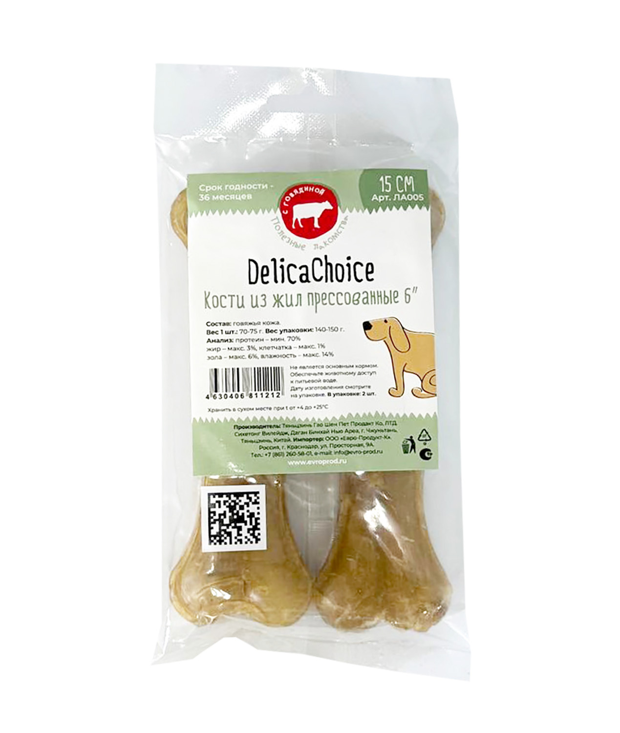 —ДеликаЧойс 6" Кости из жил 15 см (в 1шт.2 кости), 70-75г, (80шт. в кор.=160костей) , прессованные