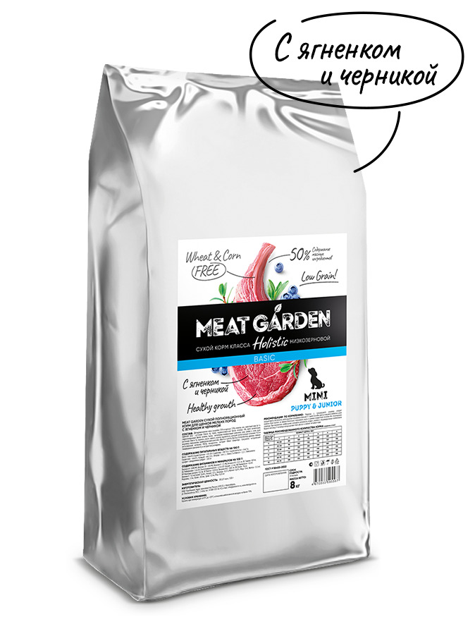 —Meat Garden Holistic д/щенков Мелк Ягненок с Черникой 8 кг/1*1