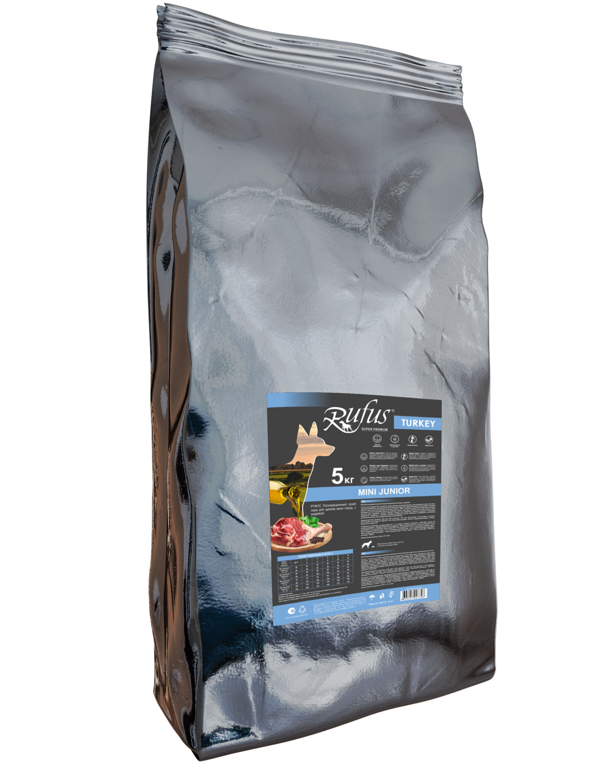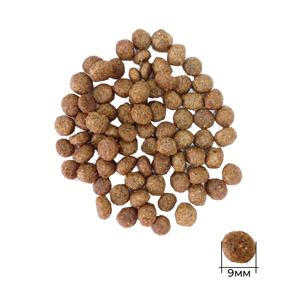 Пищевая ценность: протеин – 30%, жир – 19%, клетчатка – 1.5%, зола – 6%, кальций – 1.3%, фосфор – 1%, калий – 0.4%, натрий – 0.4%, Омега-3 и Омега-6 - 3.5%, глюкозамина сульфат - 250 мг/кг, хондроитина сульфат - 100 мг/кг. Влажность не более 10%.