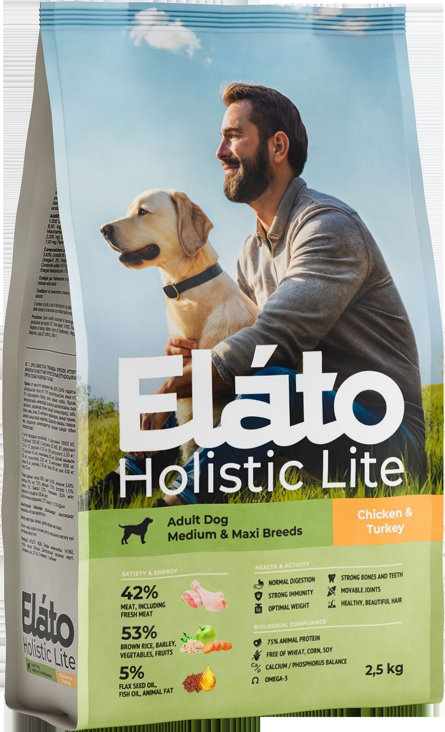 Элато Holistic Lite корм для взрослых собак средних и крупных пород с курицей и индейкой 2,5кг
